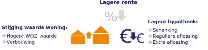 Let op: niet elke geldverstrekker biedt de mogelijkheid om gedurende de rentevaste periode een verzoek in te dienen om op basis van een hogere waarde van de woning de renteopslag te verlagen. Bij sommige geldverstrekkers kan dat alleen aan het einde van de rentevaste periode.