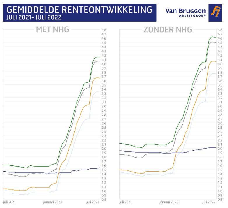 Zoals je op de rentegrafiek ziet, gaan de gemiddelde hypotheekrentes meer horizontaal dan dat ze echt een duidelijke beweging naar beneden hebben ingezet.
