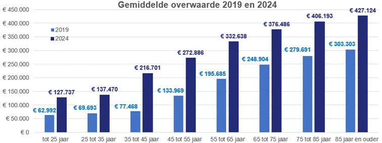 Gemiddelde overwaarde bijna € 300.000, maar verschilt sterk per leeftijd