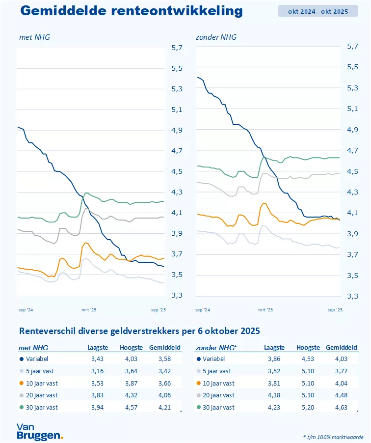 Alleen de variabele rente daalde tot juni. Na de laatste renteverlaging van de Europese Centrale Bank (ECB) stopte ook die daling grotendeels.