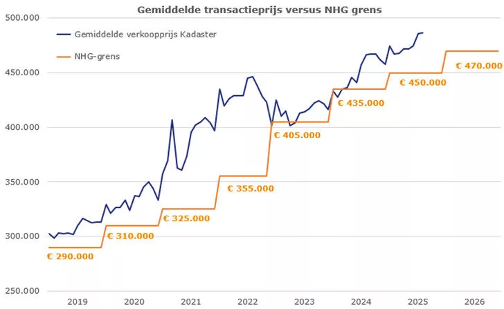 In 2026 stijgt de NHG-grens van € 450.000 naar € 470.000. Dat is een toename van 4,4%, terwijl de huizenprijzen in 2025 met 8 tot 9% omhooggaan.