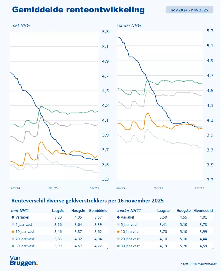 Een paar kleinere geldverstrekkers verhoogden vorige week de rente voor 10 jaar vast met NHG. Toch denken we niet dat dit een nieuwe trend is. De rentes op de financiële markten blijven namelijk erg stabiel. Zolang er geen grote economische of politieke verrassingen zijn, verwachten we de komende weken weinig veranderingen in de hypotheekrentes.