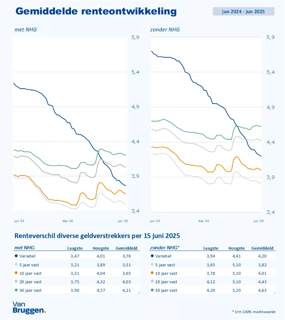 De rentes op de financiële markten bleven afgelopen week vrijwel gelijk. Bijna alle hypotheekrentes bleven stabiel. Alleen een paar geldverstrekkers verlaagden vooral de variabele rente en de rente voor 10 jaar vast met enkele honderdsten.