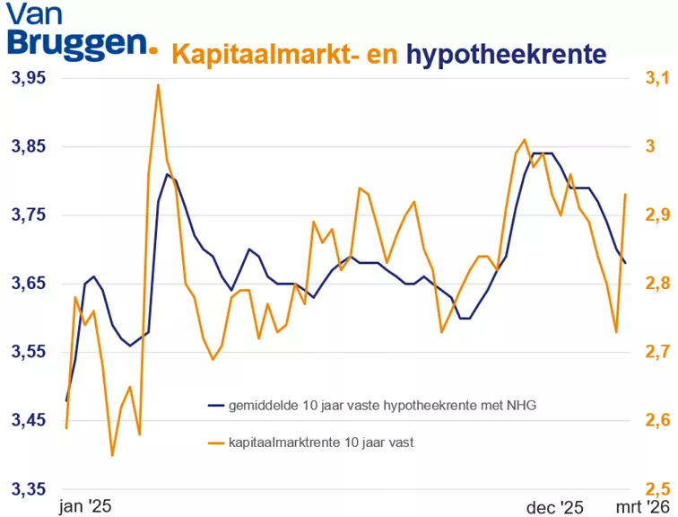 Sinds eind december daalde de hypotheekrente minder hard dan de rente op de kapitaalmarkt. Dat bleef zo tot ruim een week geleden.