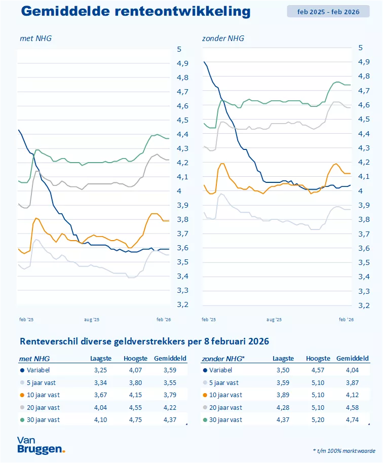 De afgelopen weken zijn er nauwelijks veranderingen in de hypotheekrentes. Dat is logisch: ook de rentes op de financiële markten bewegen weinig. Pas als er een grote onverwachtse politieke of economische gebeurtenis plaatsvindt, verwachten wij een serieuze aanpassing van de rentes.