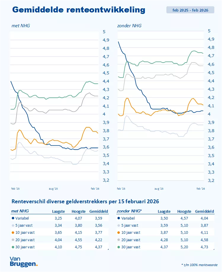De rentes op de financiële markten daalden afgelopen week heel licht. Bij de hypotheekrentes zien we dat terug bij de populaire 10 jaar vaste rente. Ongeveer 1 op de 3 geldverstrekkers verlaagde deze rente met een paar honderdsten. Voor komende week verwachten wij ook enkele kleine verlagingen.