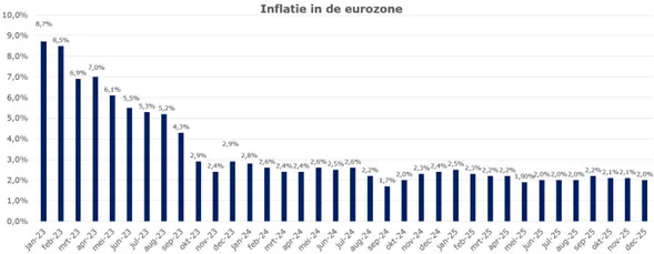 - De marktrentes zijn gedaald, vooral doordat de inflatieverwachtingen lager zijn. In de eurozone zakte de inflatie van 2,1% in november naar 2,0% in december.