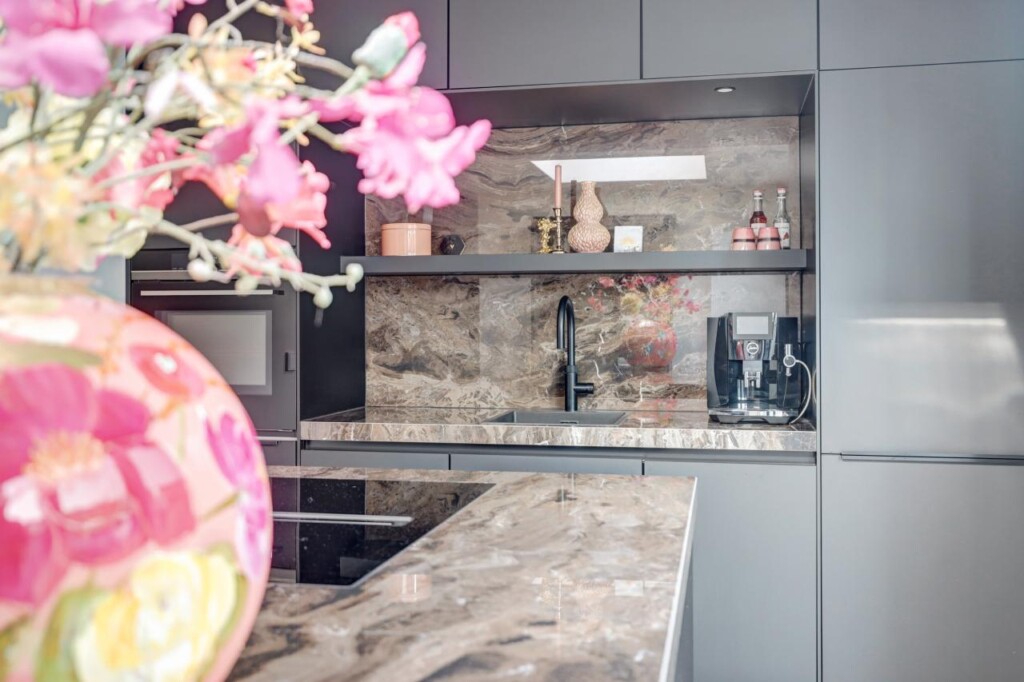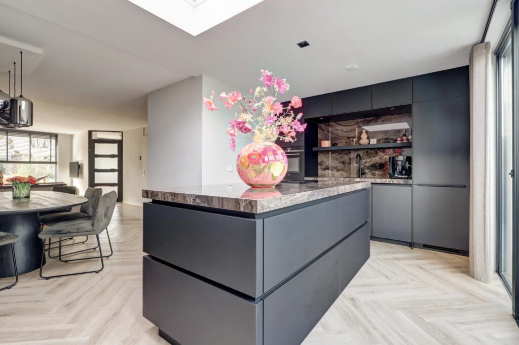De open keuken met modern kookeiland is een echte blikvanger. Hier vindt u alles wat u