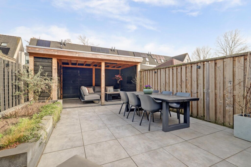 De onderhoudsvriendelijke tuin op het zuid-oosten beschikt over een prachtige veranda.