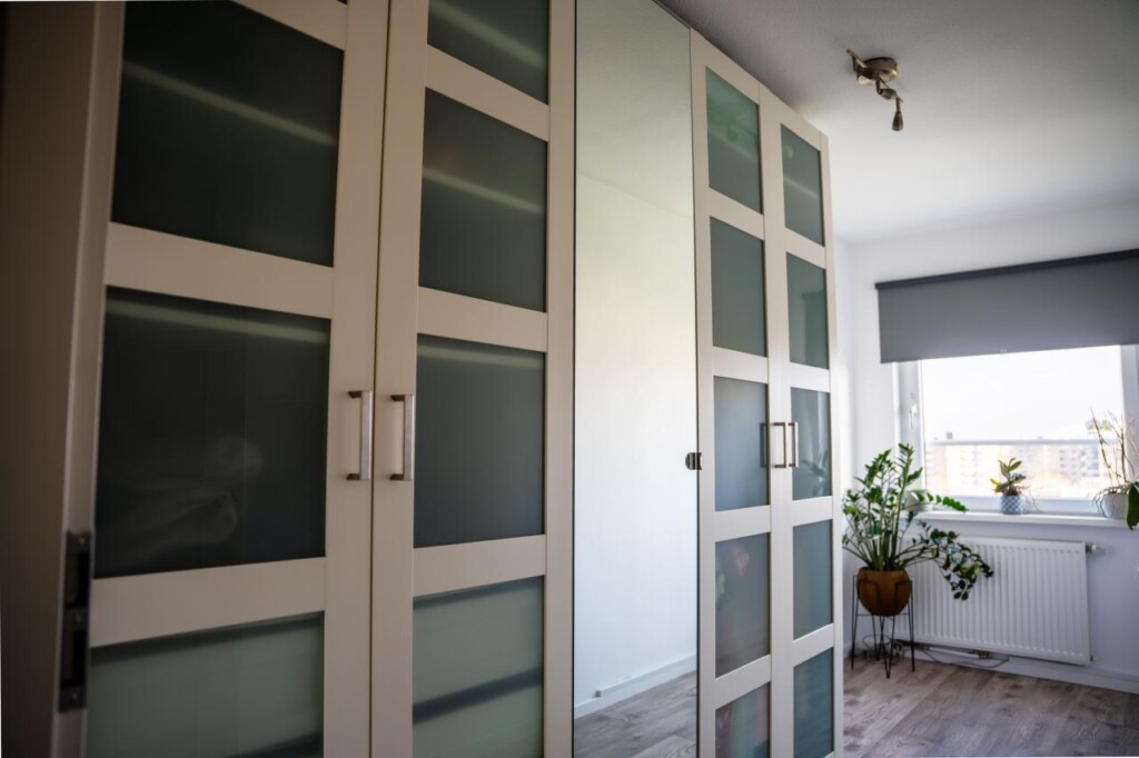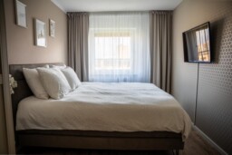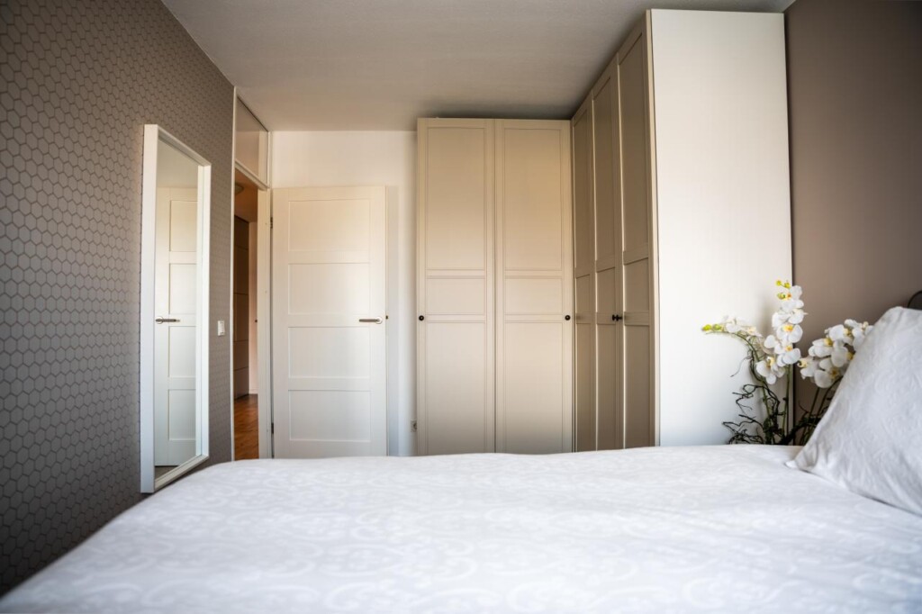Beide slaapkamers zijn bereikbaar vanuit de hal. De hoofdslaapkamer biedt voldoende ruimte voor een tweepersoonsbed en kastruimte. De tweede slaapkamer is geschikt als werk-, kinder- of logeerkamer.