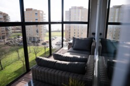 De woonkamer is ruim en licht dankzij de brede raampartijen en het vrije uitzicht richting de Maas. De indeling biedt voldoende ruimte voor zowel een comfortabele zithoek als een eethoek. De woonkamer is voorzien van airconditioning (verwarmen en koelen).