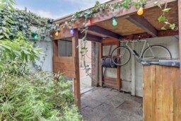 Achter in de tuin staat een praktische overkapping, ideaal voor fietsen, gereedschap of extra opslag. De tuin beschikt tevens over een achterom, wat het dagelijks gebruik extra comfortabel maakt.
