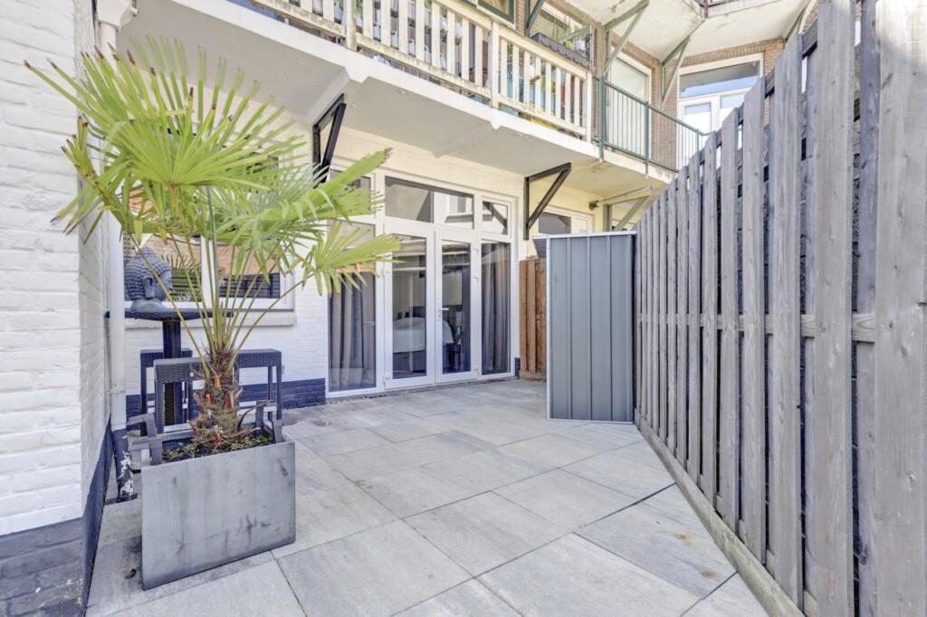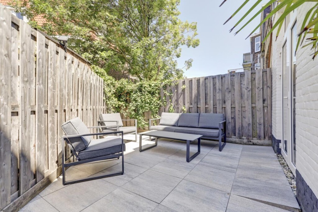 Geniet van de verzorgde, onderhoudsvrije achtertuin (NW) met water- en elektravoorziening: de ideale plek voor lange zomeravonden.