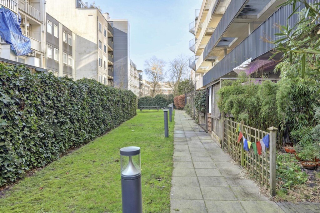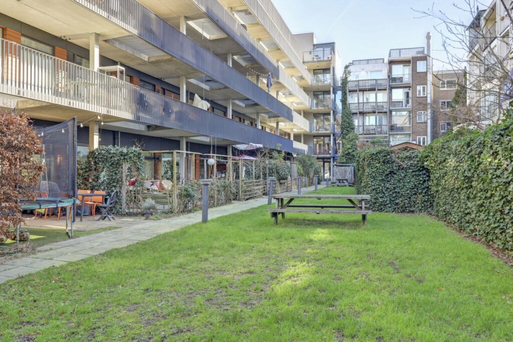 Beneden kun je gebruik maken van de gezamenlijke fietsenberging en uiteraard de grote gezamenlijke binnentuin waar zomers de hele dag de zon schijnt.