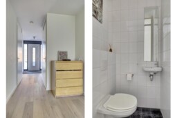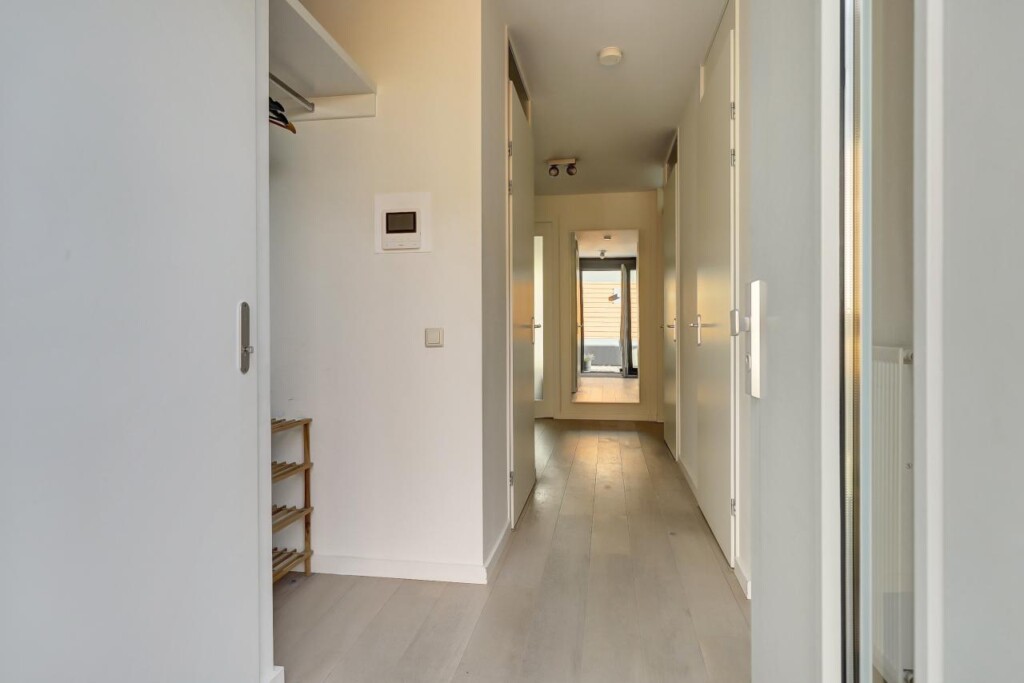 Zodra je de woning binnenkomt, valt de prettige lichtinval en de verzorgde afwerking direct op. De gehele woning is voorzien van een nette houten vloer, wat zorgt voor een warme, rustige basis die perfect past bij een eigentijdse woonstijl.