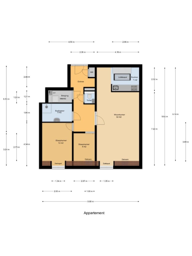 Extra praktisch is de berging in het appartement, waar zich onder andere de aansluitingen voor de wasmachine en droger bevinden. Daarnaast biedt deze ruimte volop mogelijkheden voor extra opslag.