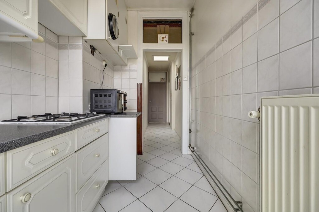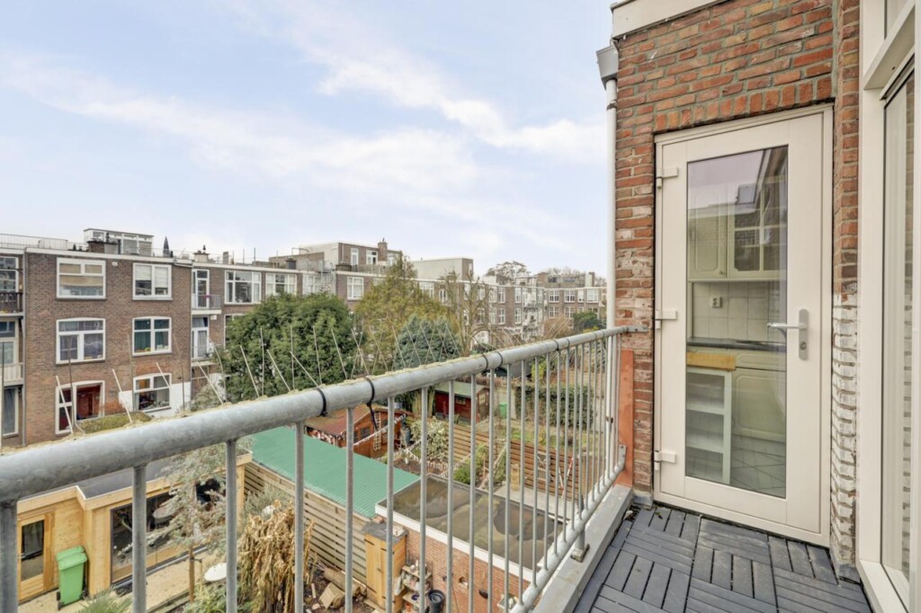 Aan de achterzijde van de woning bevinden zich de keuken en een slaapkamer. Vanuit de keuken is er toegang tot het zonnige balkon aan de achterzijde, een fijne en rustige plek om buiten te zitten.