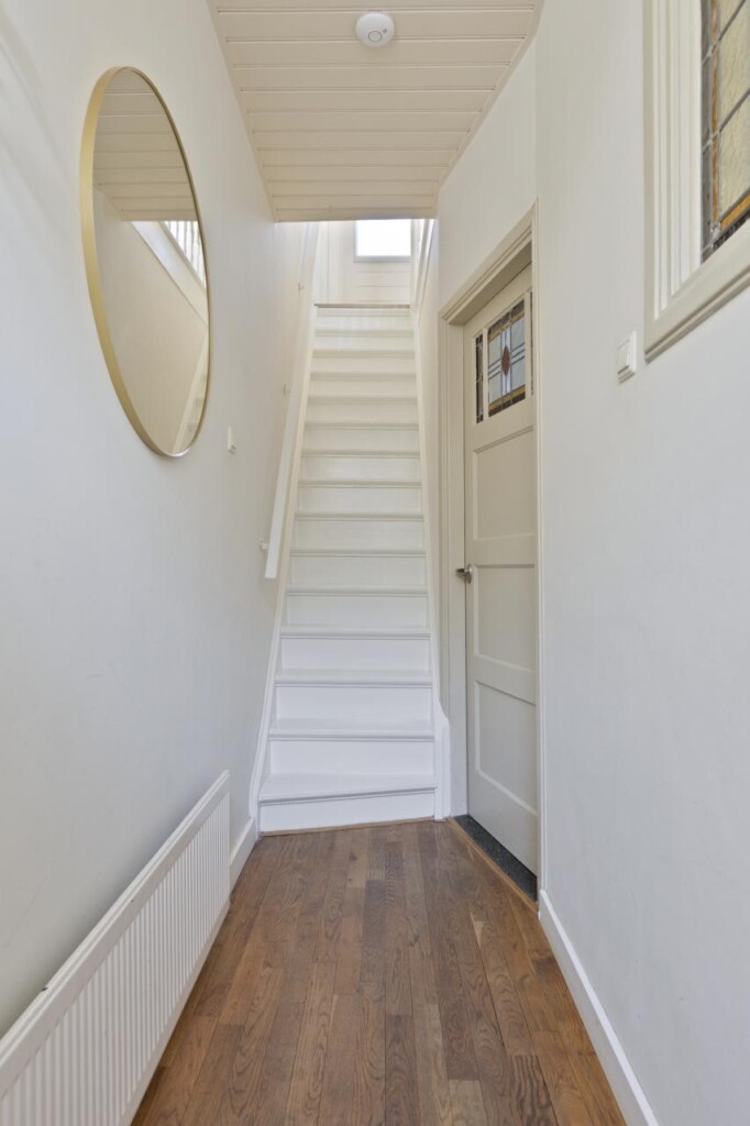 Op de eerste verdieping zet de prettige sfeer zich moeiteloos voort. De overloop geeft toegang tot twee volwaardige kamers en de vaste trap naar de zolderverdieping. Een airco-unit op deze etage zorgt voor extra comfort, zowel tijdens warme zomerdagen als in de koudere maanden. De slaapkamer aan de voorzijde is royaal van formaat en heeft een rustige, verzorgde uitstraling. Dankzij de lichtinval en de praktische indeling voelt deze ruimte ruim en ontspannen aan. De aanwezige bergkast en het wastafelmeubel maken deze kamer extra comfortabel in dagelijks gebruik. De tweede kamer, gelegen aan de achterzijde, is eveneens licht en netjes onderhouden. Dat maakt het een veelzijdige ruimte die zich gemakkelijk laat inrichten als kinder- of logeerkamer, werkkamer, hobbyruimte of kleedkamer.