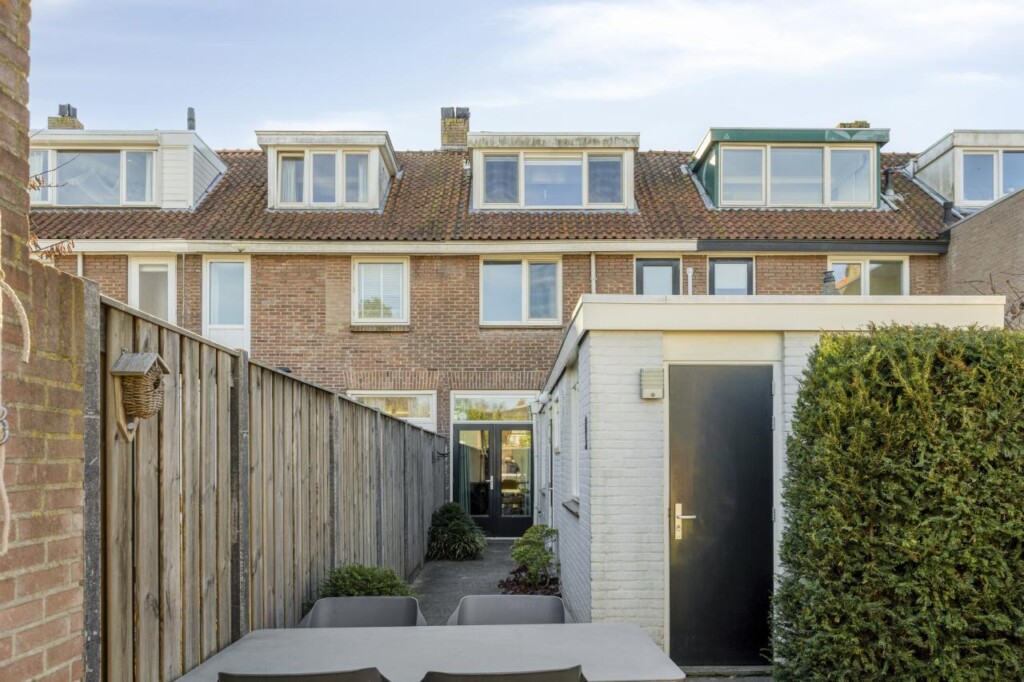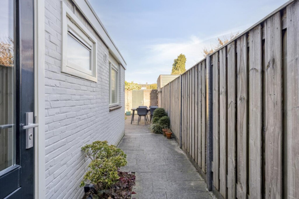 En dan de tuin. In een wijk als Armhoef verwacht je vaak een compacte stadsbuitenruimte, maar hier wacht juist een tuin die opvallend royaal aanvoelt. Een plek waar je werkelijk iets mee kunt. Van een zonnige loungehoek tot een buitentafel voor lange zomeravonden, van spelende kinderen tot een ochtend in alle rust met een boek en een kop koffie. De combinatie van bestrating, groen en beplanting zorgt voor een prettige balans tussen gebruiksgemak en sfeer. De achterom vergroot het praktische comfort en de stenen berging, met daarin de cv-opstelling en aansluitingen voor de wasapparatuur, maakt het geheel compleet.