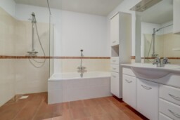 Het appartement beschikt over twee ruime slaapkamers. De royale badkamer is compleet uitgerust met een ligbad, inloopdouche, wastafel in meubel en een handdoekradiator _ perfect om helemaal tot rust te komen na een drukke dag.