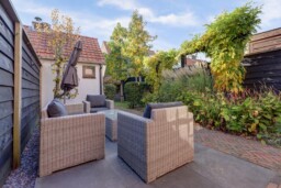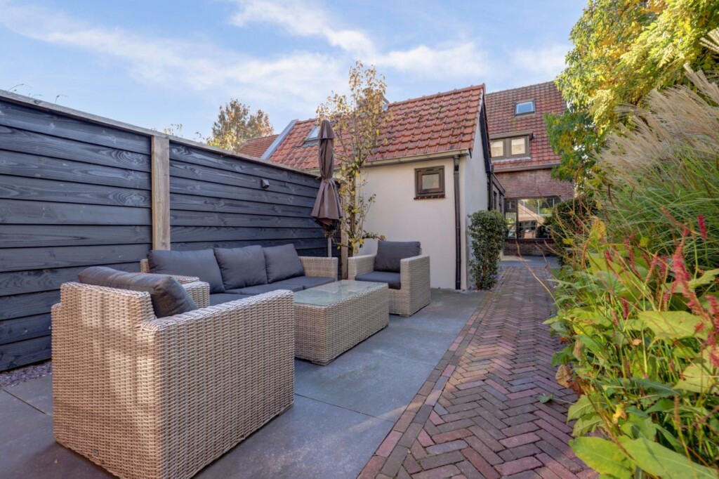 De speels ingerichte tuin biedt een gezellig loungegedeelte waar u heerlijk kunt genieten van een kopje koffie of een barbecue met familie en vrienden. De ruime stenen berging is voorzien van een zolder en biedt plaats aan meerdere fietsen, een werkbank en extra opslag. Naast de berging is een keurig afgesloten opstelplaats voor de containers, zodat alles netjes uit het zicht blijft.