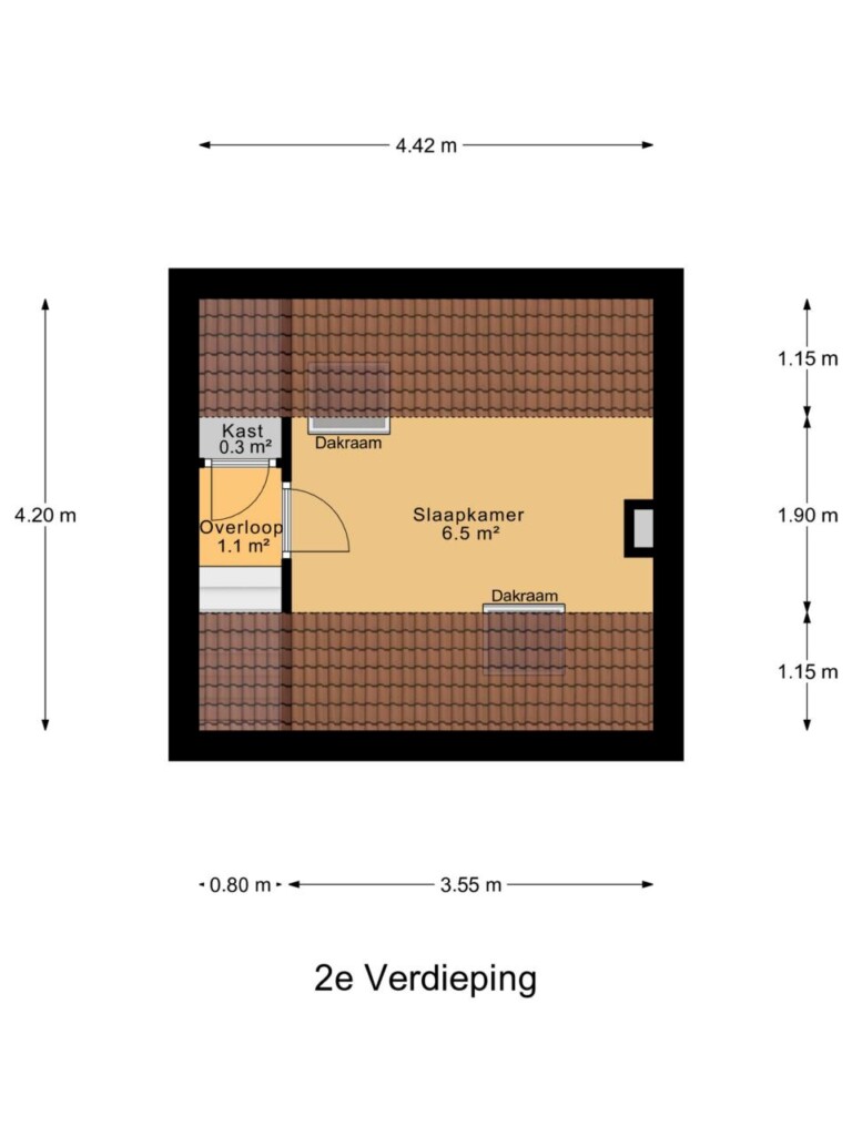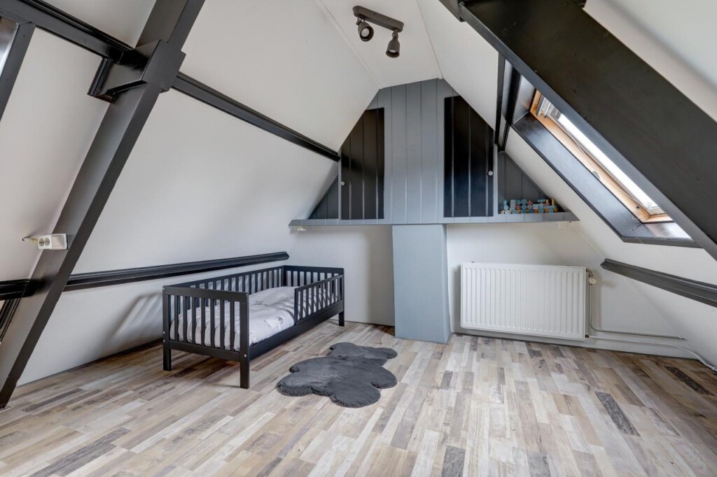 Op de zolder bevindt zich de derde slaapkamer. Dankzij twee grote dakramen heeft deze kamer veel natuurlijk licht, wat zorgt voor een aangename en luchtige sfeer. Een ideale plek voor een extra slaapkamer, werkkamer of hobbyruimte.