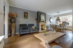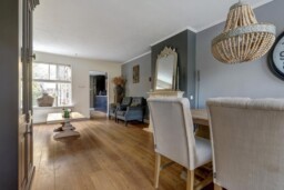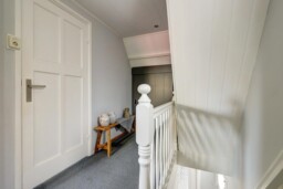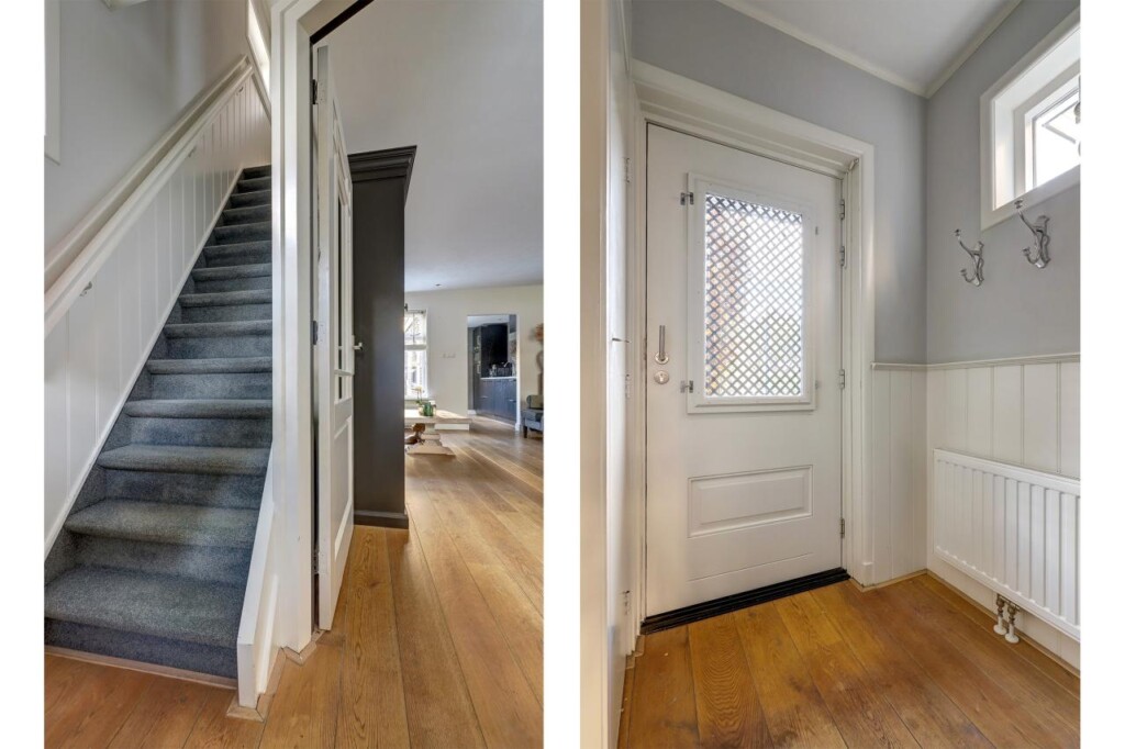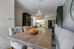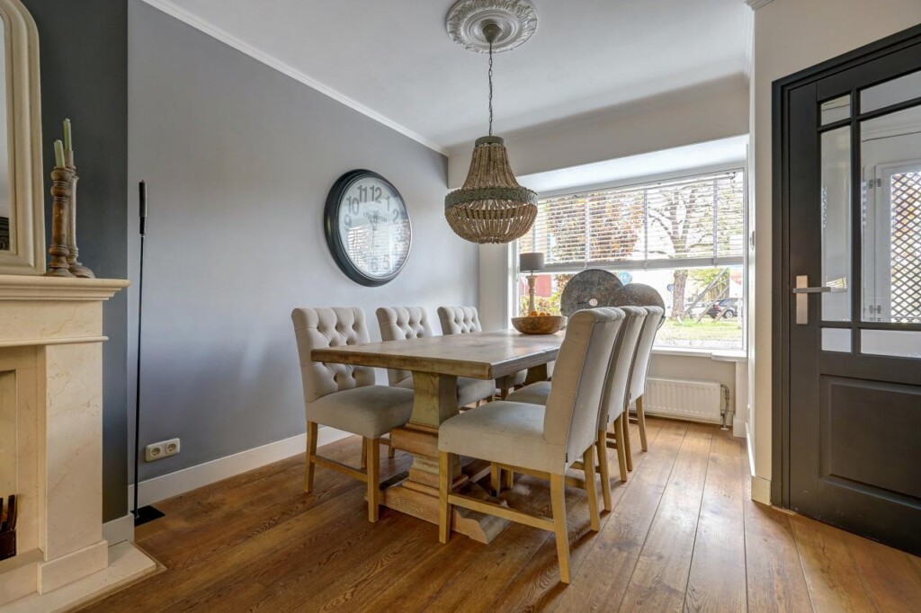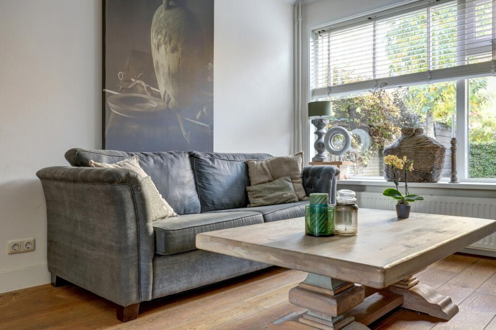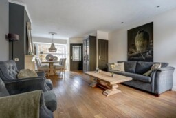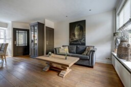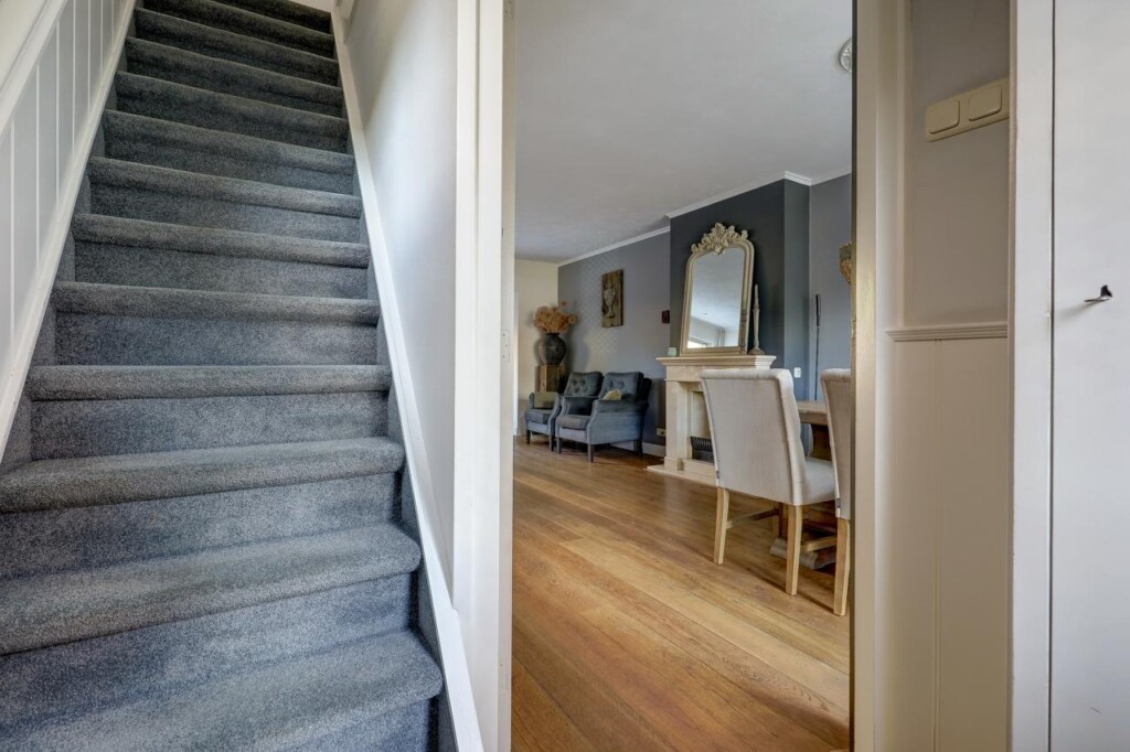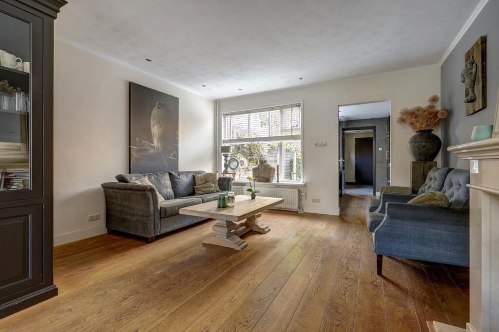 Bij binnenkomst in de hal treft u de trapopgang, meterkast en de toegang tot de woonkamer. Zowel de hal als de woonkamer zijn voorzien van een fraaie houten vloer die direct een warme sfeer geeft. De gezellige woonkamer is ingedeeld met een comfortabel eetgedeelte en een ruime zithoek, ideaal voor ontspannen avonden thuis.