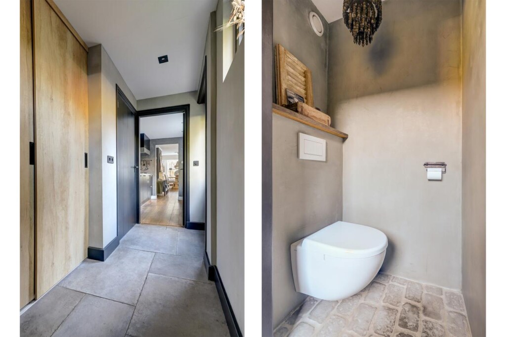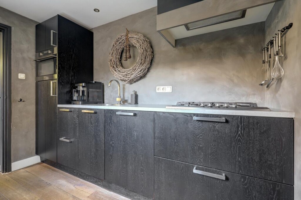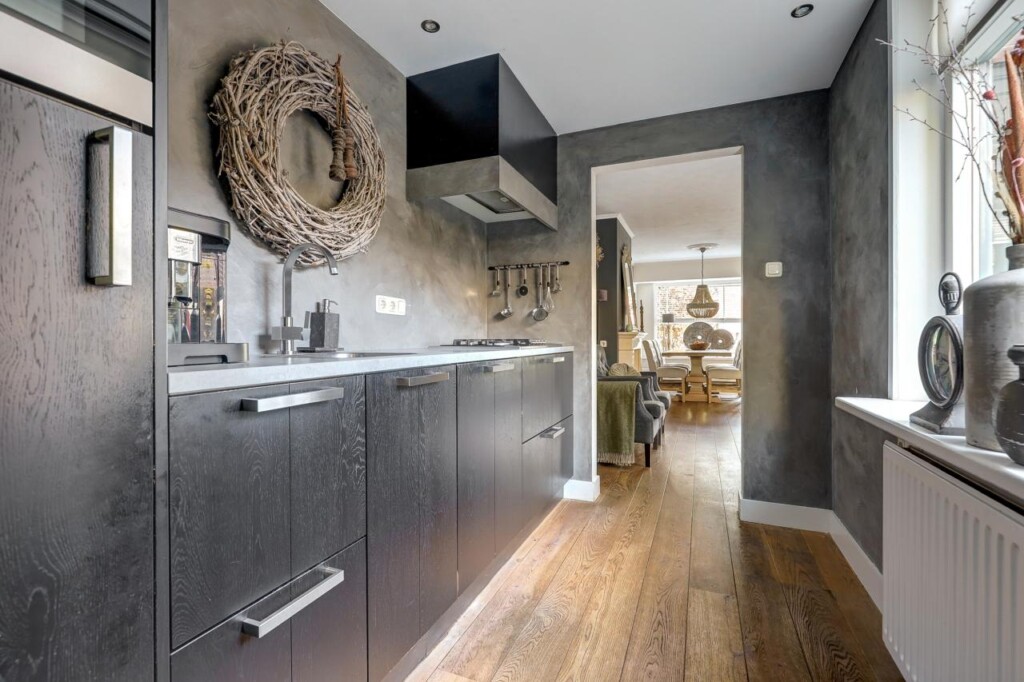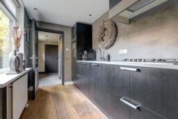 Via de woonkamer komt u in de keuken, uitgerust met een vierpits gaskookplaat, afzuigkap, combimagnetron, koelkast en een vaatwasser. In de aangrenzende hal bevinden zich het toilet en een ruime kast met schuifdeuren, waar aansluitingen voor witgoed en de C.V.-installatie zijn. Vanuit deze hal heeft u tevens toegang tot de luxe badkamer, vernieuwd in 2020, met een ligbad, inloop regendouche, designradiator en een brede wastafel in een stijlvol meubel. De badkamer is voorzien van comfortabele vloerverwarming.