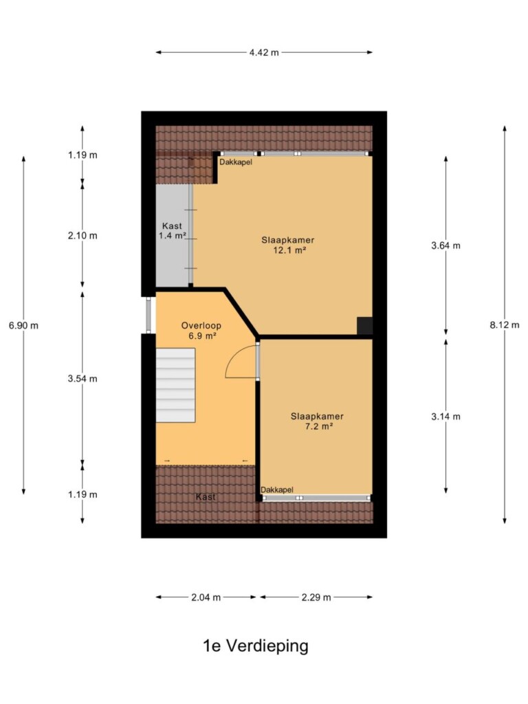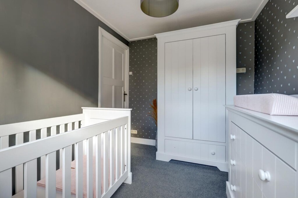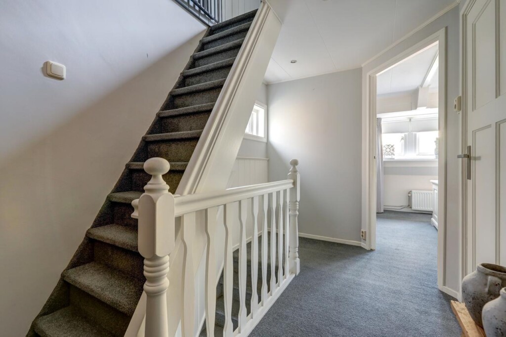 Via de overloop bereikt u twee slaapkamers. De master-bedroom beschikt over een royale kastenwand, waardoor u aan opbergruimte geen gebrek zult hebben. Deze verdieping biedt rust en privacy, perfect om heerlijk te ontspannen na een lange dag.