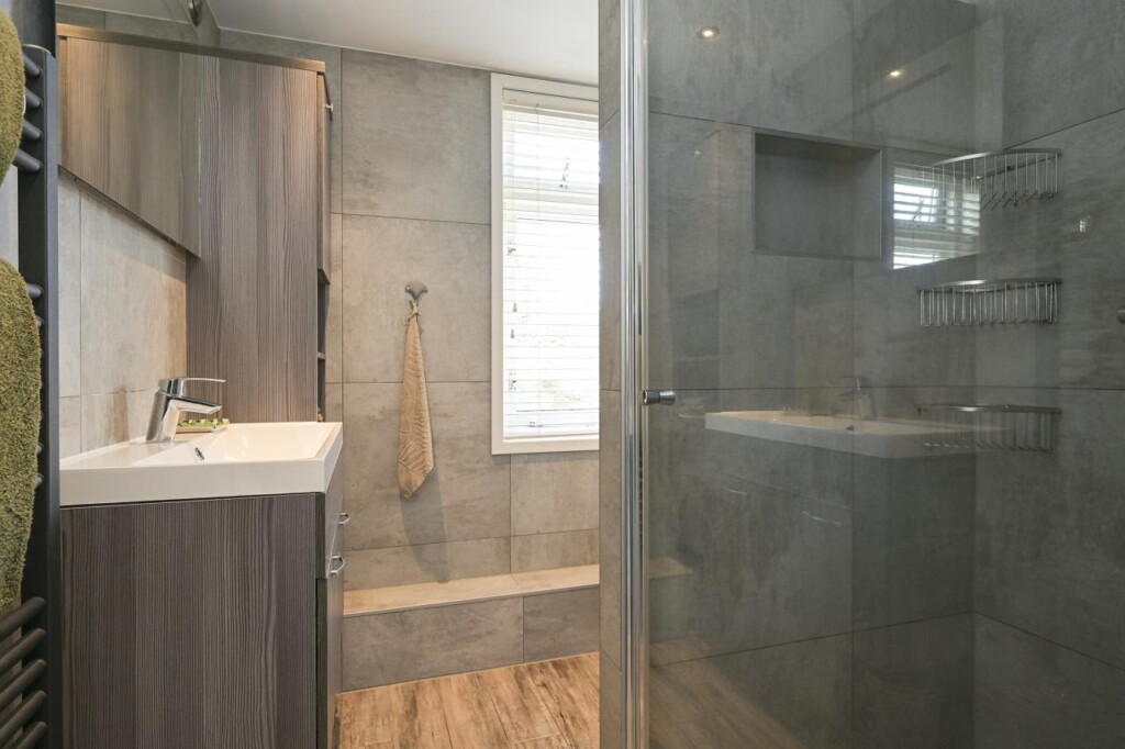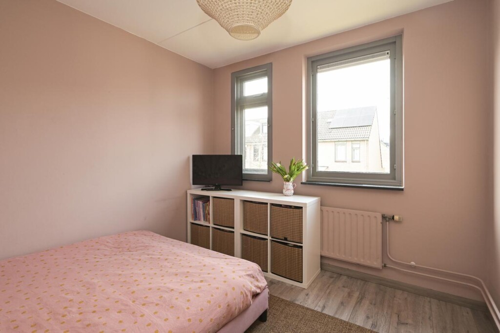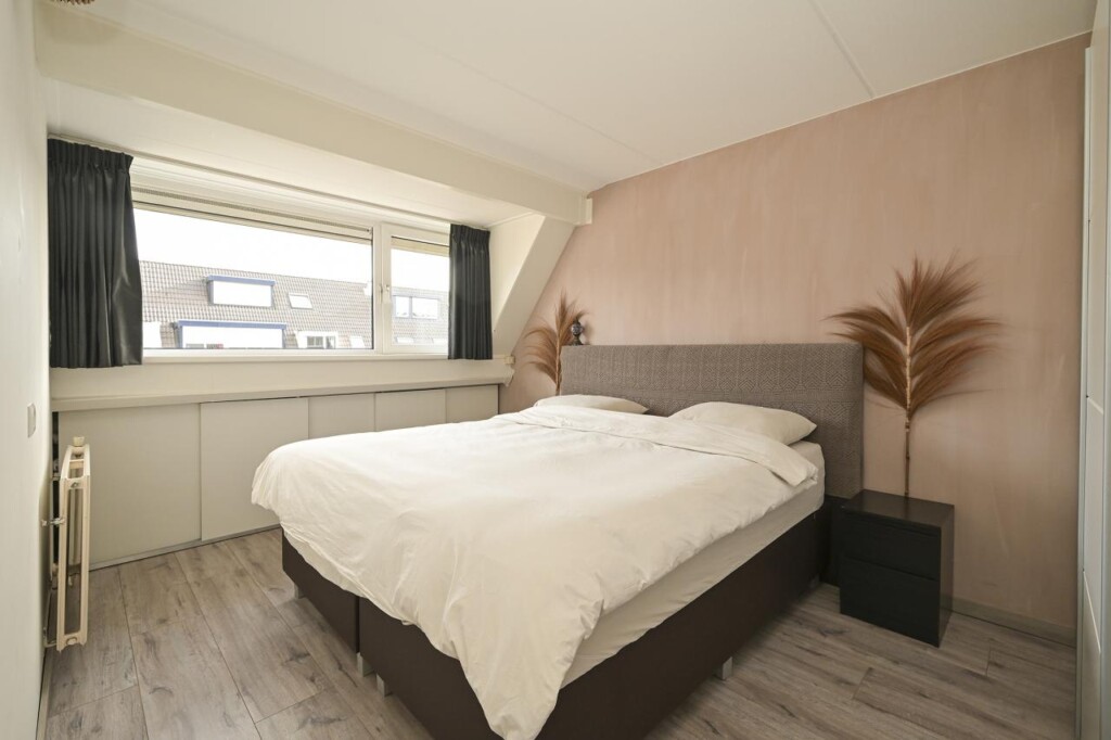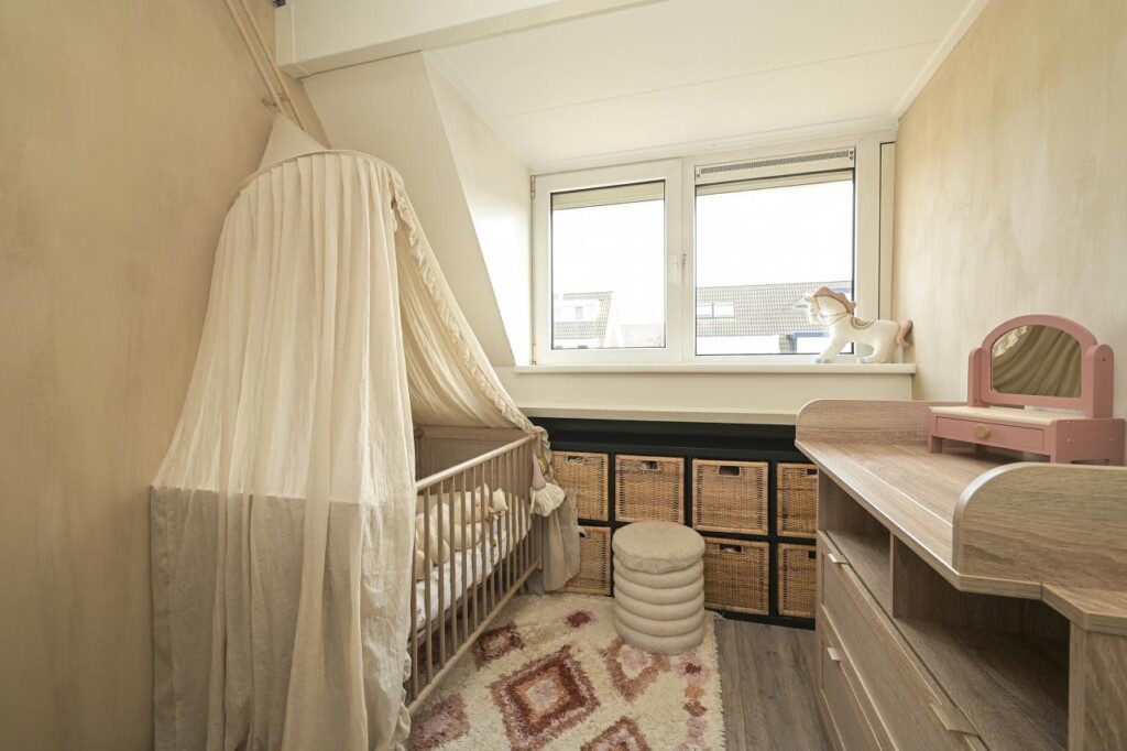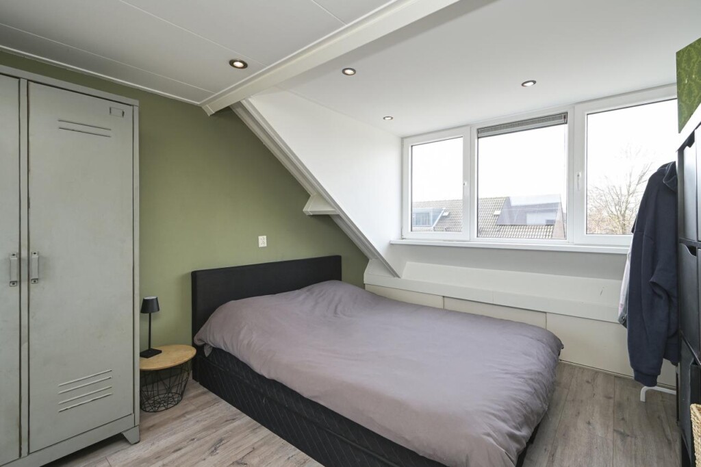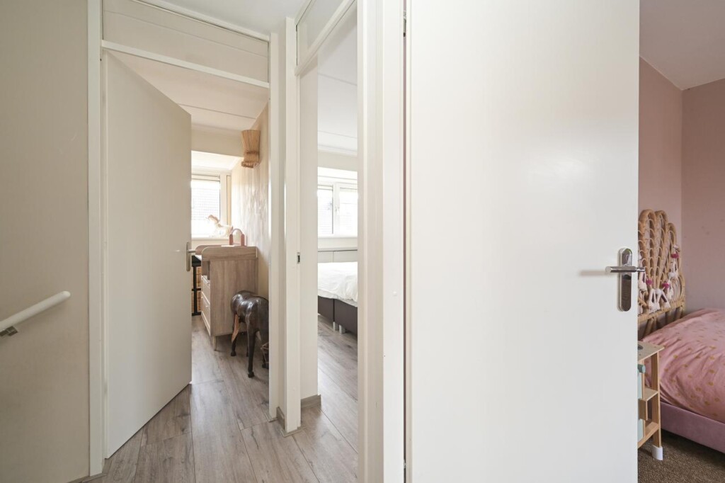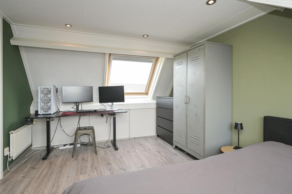 Op de eerste verdieping bevinden zich drie slaapkamers. Aan de achterzijde liggen twee ruime slaapkamers, beide voorzien van een dakkapel en bergruimte achter de knieschotten. De badkamer is in 2018 vernieuwd en voorzien van een inloopdouche, wastafelmeubel, wandcloset en elektrische vloerverwarming.