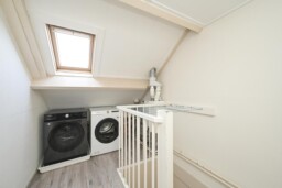 De tweede verdieping beschikt over een overloop met dakraam, aansluitingen voor wasmachine en droger en de opstelplaats van de CV-ketel (Remeha Avanta, 2018). Hier bevindt zich tevens de vierde slaapkamer met dakkapel. Daarnaast is er een vliering aanwezig voor extra bergruimte.