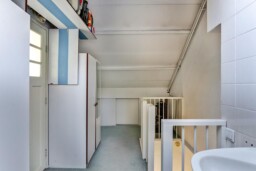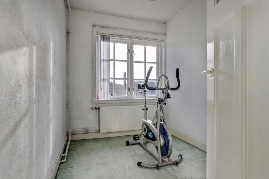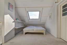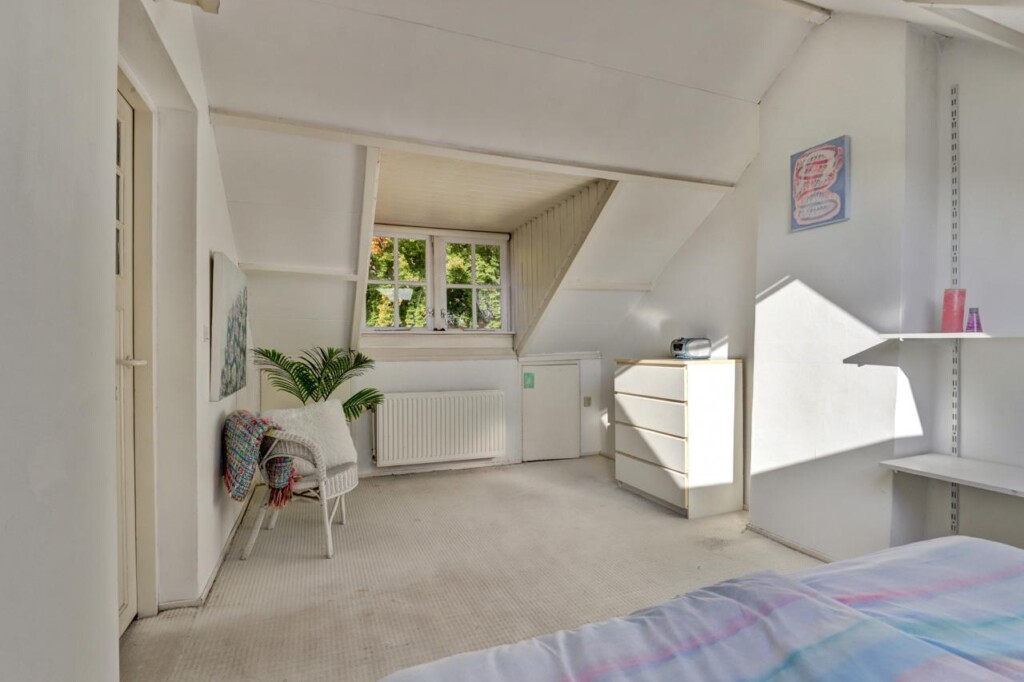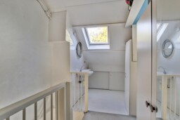 Tweede verdieping: vaste trap naar voorzolder met veel bergruimte, wastafel, ruime vierde slaapkamer of werkruimte.