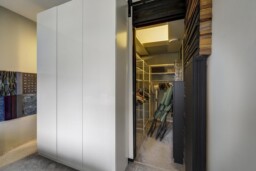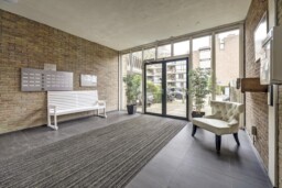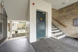 Begane grond: entree, brievenbussen, lift, trappenhuis en toegang tot de royale fietsenberging.