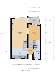 3e verdieping: overdekte entree, hal, meterkast, en deur naar badkamer met toilet, royale woonkamer met openhard en met schuifpui naar het balkon. De keuken is voorzien van een gashaard en de volgende inbouwapparatuur: Combi-oven, koelkast, vaatwasser, gaskoopplaat. Royale slaapkamer met inloopkast en eveneens toegang tot het heerlijke ruime balkon en modern badkamer met wastafelmeubel, douche en wasmachine-aansluiting.
