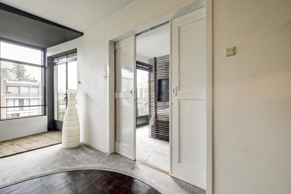 In het markante en karakteristieke complex “de Parkflat” gelegen, gemoderniseerd voormalig tweekamerappartement op de 3e verdieping met heerlijk balkon en riante berging in de onderbouw. Het complex kenmerkt zich door de bijzondere architectuur uit de jaren ’50 zoals te zien is aan de raamkozijnen, galerijen en de portieken van de appartementen.