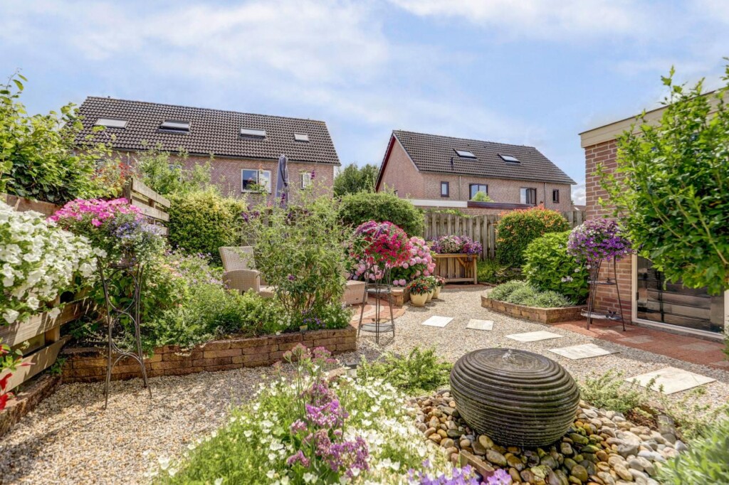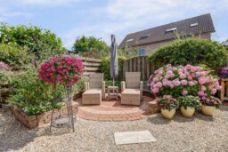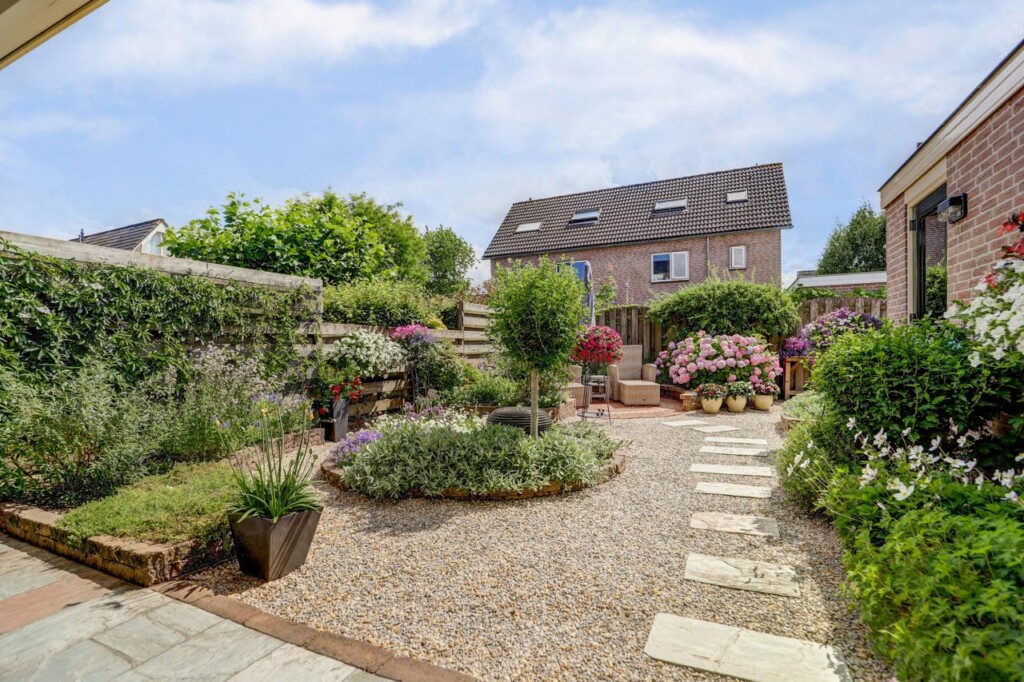 De tuin is een echte blikvanger: een royale veranda nodigt uit tot gezellige barbecues met vrienden en familie. De kleurrijk op hetzuiden goed onderhouden tuin beschikt achterin over een sfeervol zitje waar u heerlijk kunt genieten van een kopje koffie in de zon.