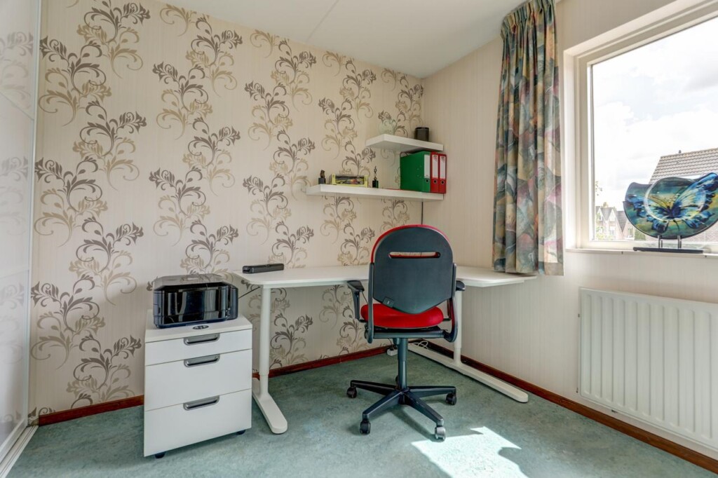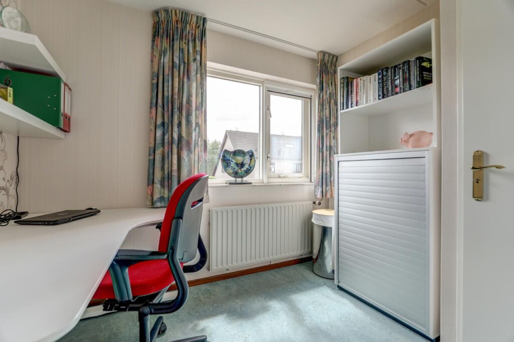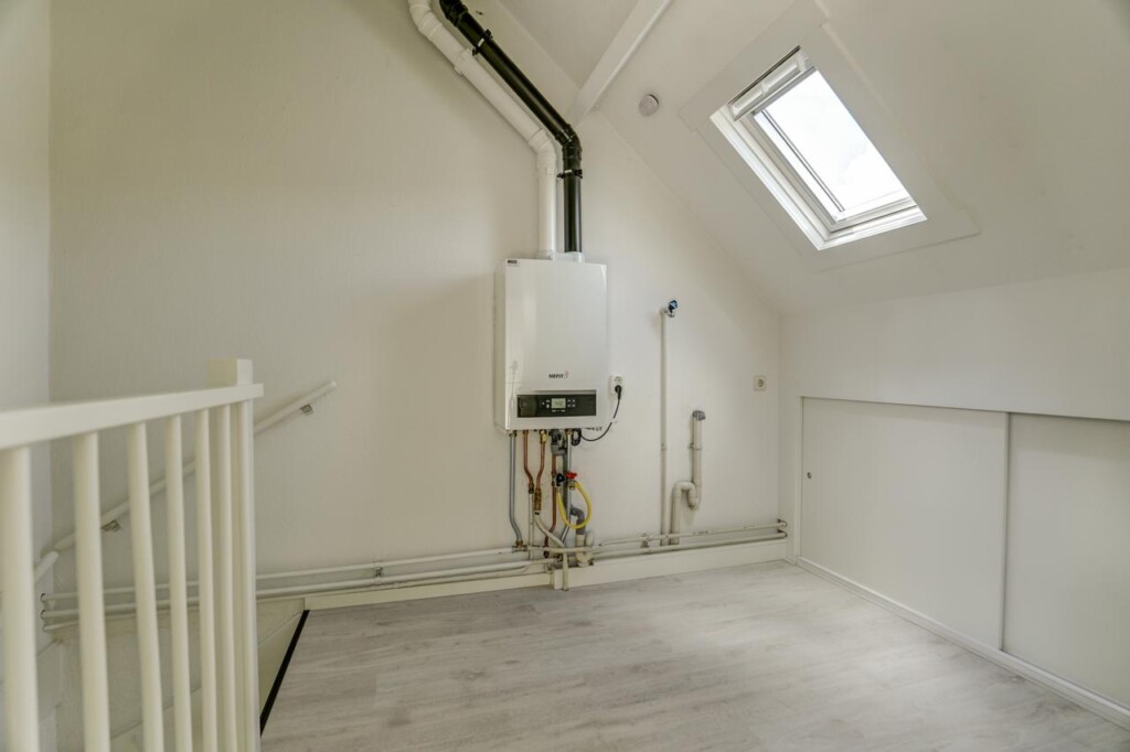 De tweede etage biedt een voorzolder met c.v.-ketel en aansluitingen voor wasmachine en droger, plus een derde slaapkamer met een groot dakraam voor extra licht en wederom handige bergruimte.