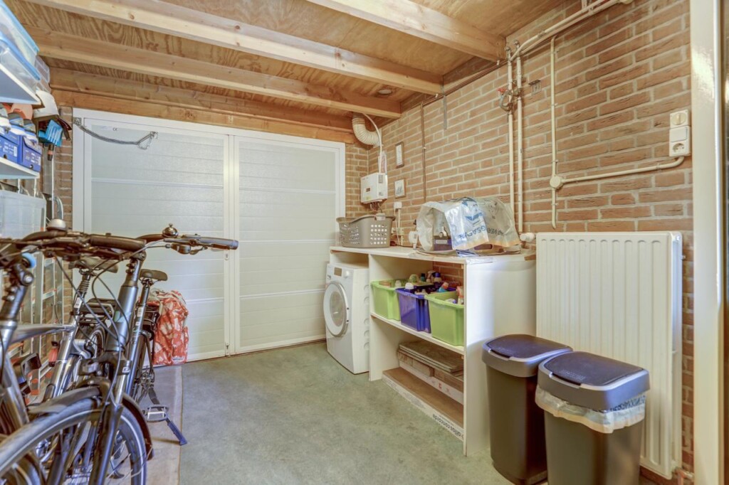 De garage is verdeeld in twee gedeeltes: het voorste deel heeft aansluitingen voor wasmachine en droger, terwijl het achterste deel perfect is als berging of hobbyruimte _ de mogelijkheden zijn hier eindeloos.