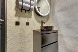 De badkamer (2025) is geheel betegeld, voorzien van een wastafel, comfortabele douchehoek, en aansluitingen voor zowel een wasmachine als een droger. Ook het separate toilet is in 2025 volledig gemoderniseerd en past helemaal bij de stijl van nu.