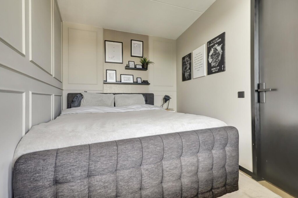 De slaapkamer bevindt zich aan de galerijzijde en biedt een rustige plek om te slapen. Daarnaast is er een tweede kamer, die momenteel dienstdoet als kastenkamer en technische ruimte _ ideaal voor extra bergruimte of bijvoorbeeld als thuiswerkplek.