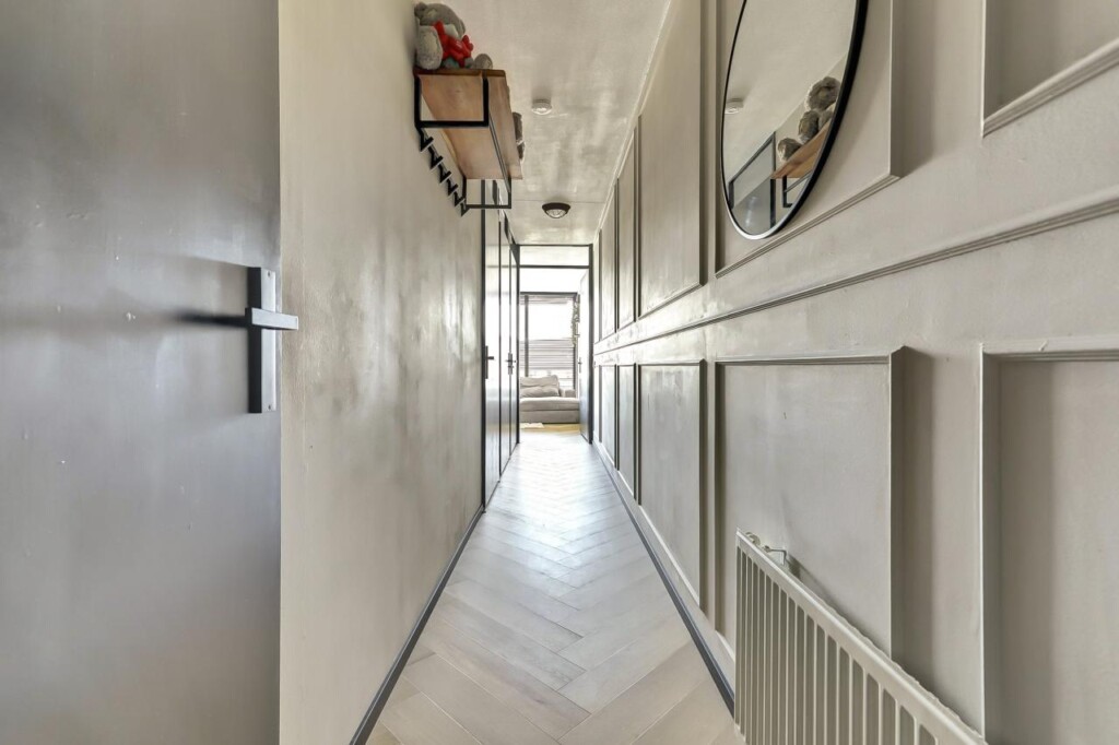 Met de lift of via het trappenhuis bereik je gemakkelijk de tweede etage waar het appartement is gelegen. Via de galerij kom je bij de voordeur van het appartement. Eenmaal binnen valt direct de verzorgde afwerking op: een nette visgraat PVC vloer (2025) en lichte wanden zorgen voor een frisse uitstraling. De hal geeft toegang tot alle vertrekken.