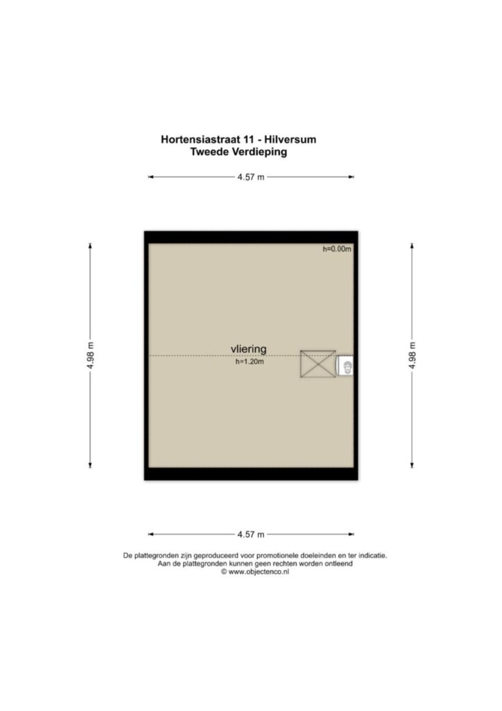 Tweede verdieping: ruime vliering waar al voorbereiding is getroffen voor een dakopbouw.
