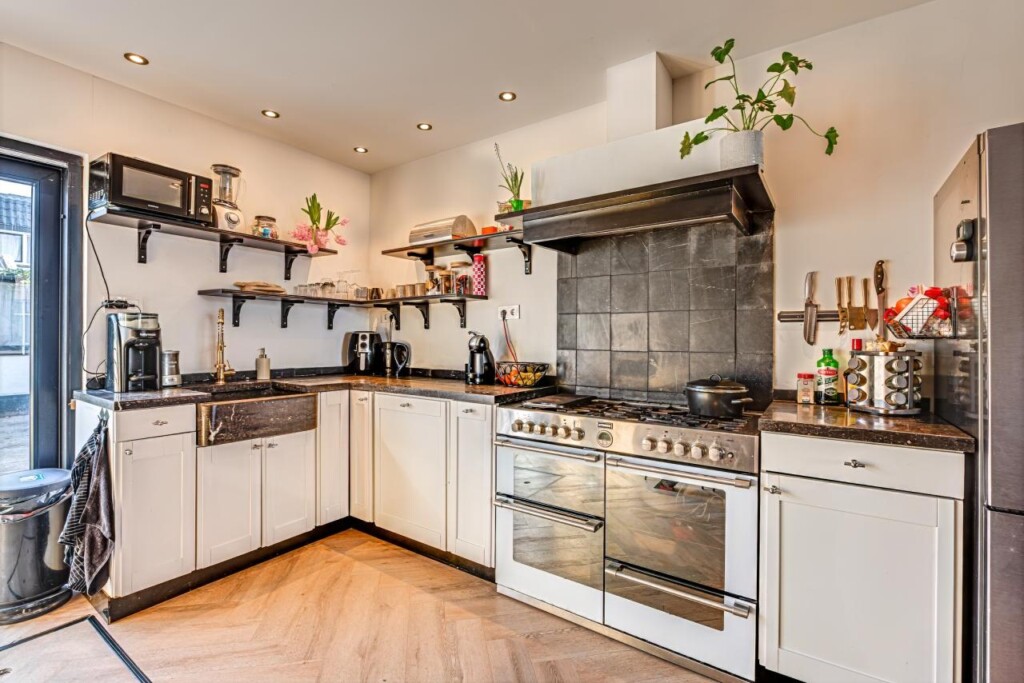 Ben je op zoek naar een uitstekende verbouwde en betaalbare woning in de geliefde Bloemenbuurt in Hilversum? Kom dan zeker eens een kijkje nemen in deze charmante eengezinswoning uit 1904. Het huis heeft een verrassend praktische indeling met een lichte, royale woonkamer die naadloos overgaat in de open leefkeuken. Dankzij de uitbouw met schuifpui, de grote raampartij en de hoge plafonds voelt de begane grond erg ruim en verbonden met buiten. Vanuit hier stap je direct de fraai aangelegde achtertuin op het oosten in, waar je ook de vrijstaande stenen berging en een handige achterom vindt. De woning is uitermate goed verduurzaamd en is nagenoeg geheel voorzien van HR++-glas, wat leidt tot een gunstig energielabel A!