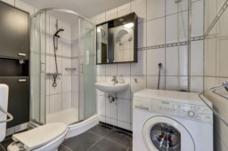 Slaapkamers, badkamer met wastafel, douche en toilet.