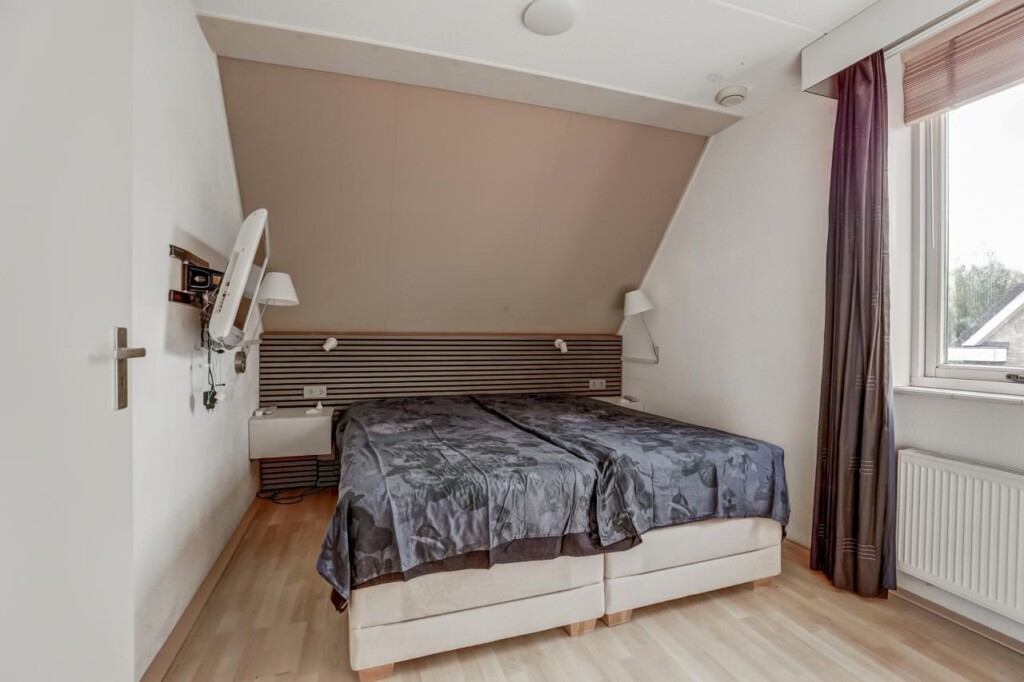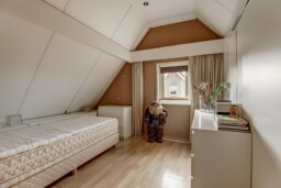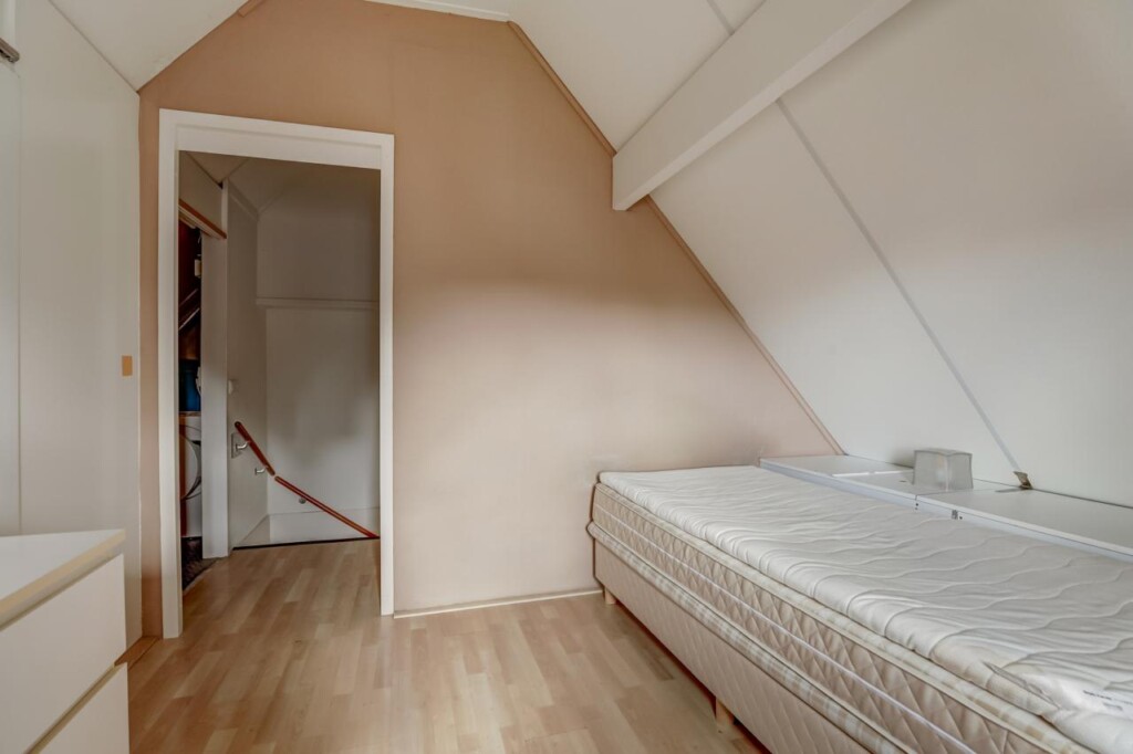 Met een vaste trap bereik je de ruime zolderverdieping (ca. 30 m²). Deze doet nu dienst als vierde slaapkamer, maar kan ook worden ingericht als werk- of hobbykamer. Hier bevindt zich tevens de wasmachineaansluiting.