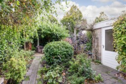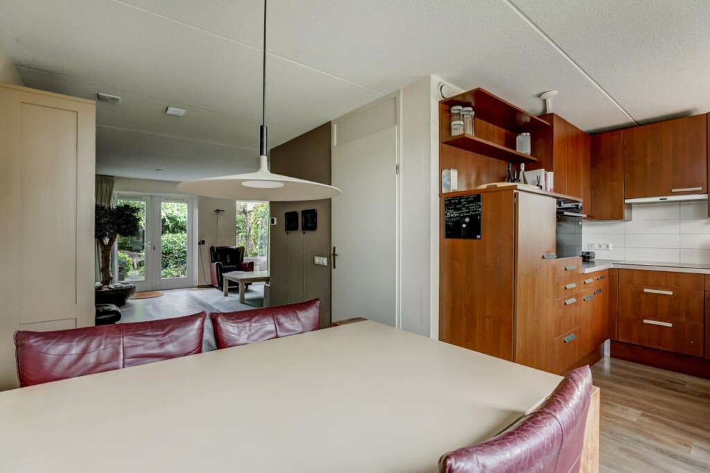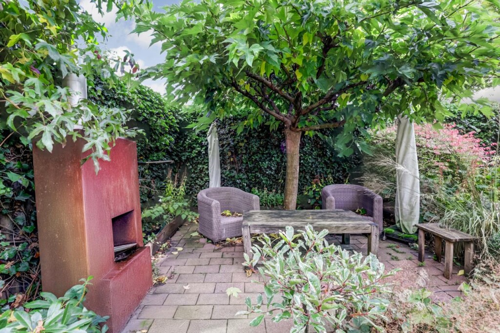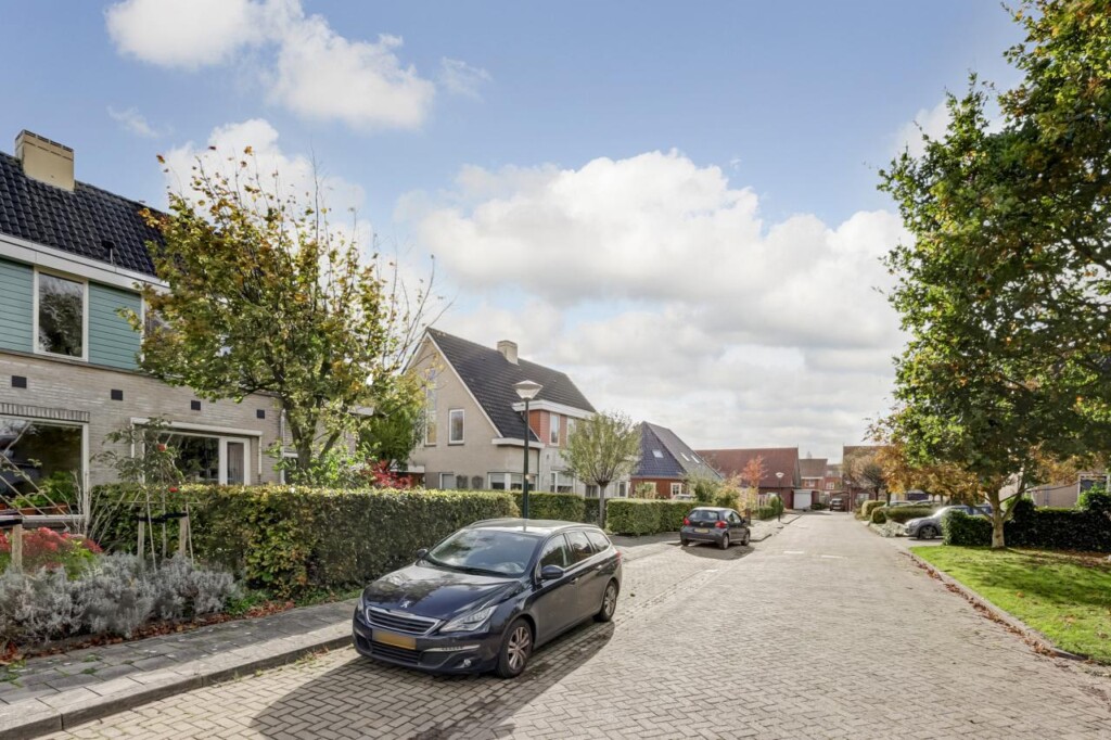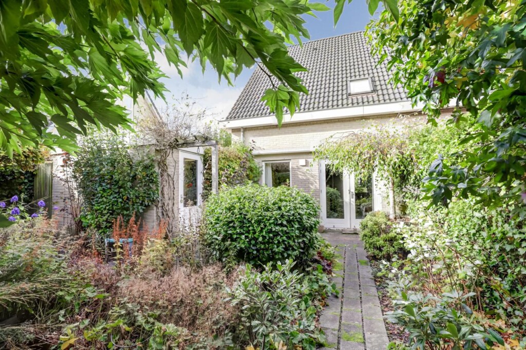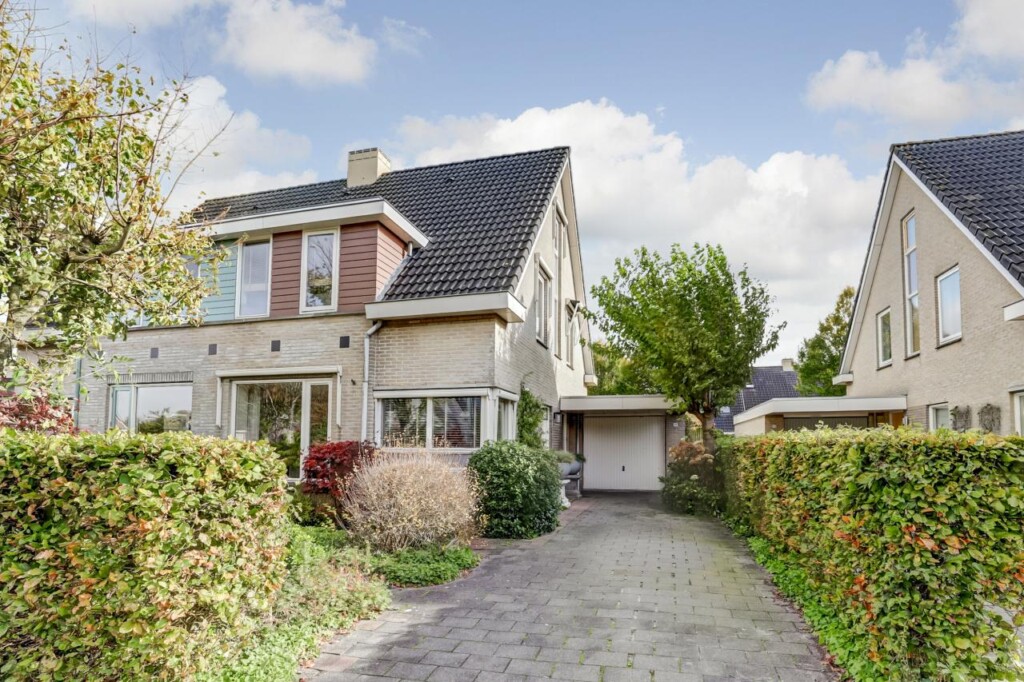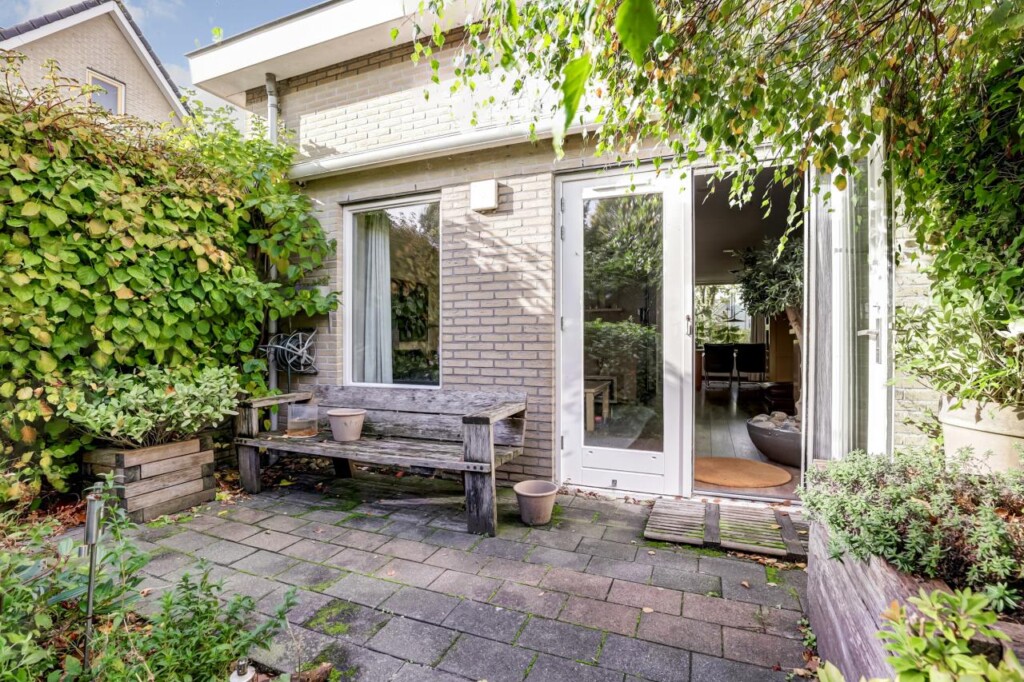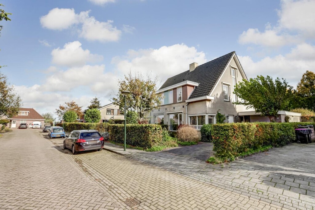 Een breed zijpad langs de garage leidt naar de onderhoudsarme achtertuin op het zuidoosten: zonnig en met veel privacy. De aangebouwde stenen garage heeft een betonvloer, kanteldeur en een loopdeur naar de tuin_geschikt voor opslag, fietsen of hobbyruimte. Aan de voorkant is ruime parkeergelegenheid, zowel op straat als op de eigen oprit voor meerdere auto’s.
