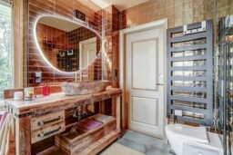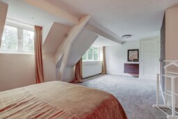 Op de eerste etage bevindt zich de luxe master bedroom met inloopkast, ensuite badkamer en openslaande deuren naar het balkon aan de achterzijde. De badkamer is voorzien van vloerverwarming, een ligbad, een royale inloopdouche, toilet en dubbele wastafel. Daarnaast zijn er aan de voorzijde twee slaapkamers, waarvan één eveneens openslaande deuren heeft naar een balkon. De tweede badkamer op deze verdieping beschikt over een douche en toilet.