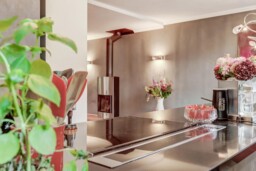 -Luxe woonkeuken en sfeervolle woonkamer met houtkachel