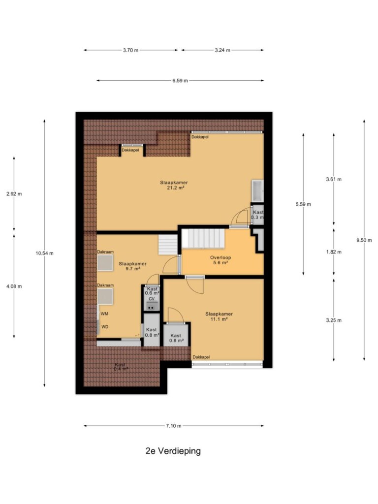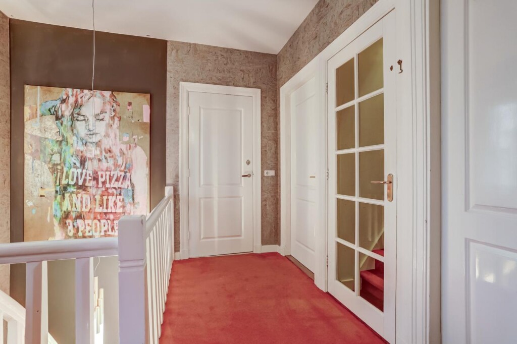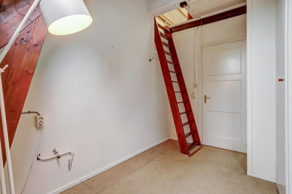 De tweede verdieping biedt nóg meer ruimte: twee slaapkamers met inbouwkasten, een wasruimte met cv-installatie, aansluitingen voor wasmachine en droger en een vaste trap naar de zolder. De zolder is praktisch ingedeeld als bergruimte met verlichting.