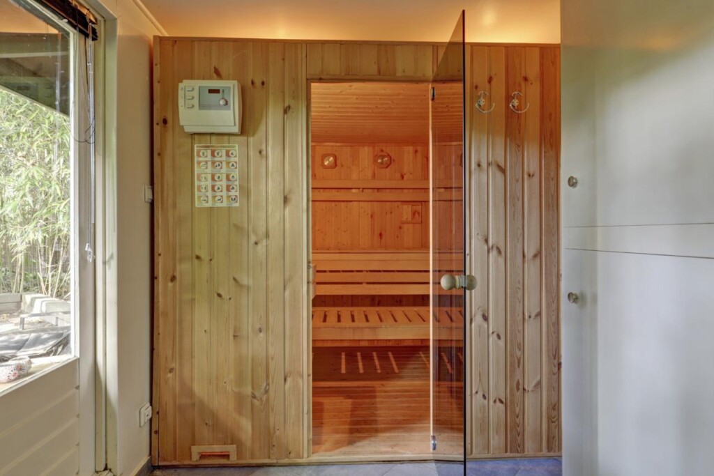 -Grote achtertuin met carport, garage, schuur en wellnessruimte met sauna